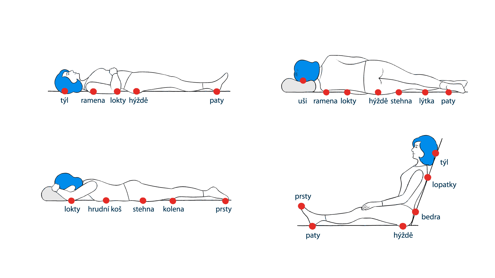 proto pravidelně měňte polohy a k zajištění osoby používejte vhodné polohovací pomůcky.